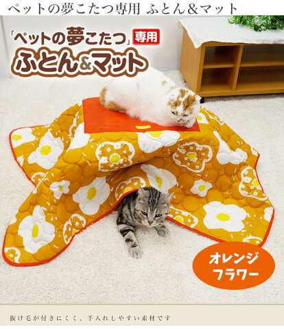 ドギーマンハヤシ 「ペットの夢こたつ」専用 ふとん&マット オレンジフラワー 4976555949292 ペットの夢こたつ専用のふとんとマットのセット。