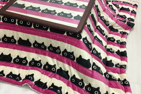 【 商品説明 】 マタノアツコの中でも人気の猫の柄と、可愛らしいボーダーが特徴的な、合繊こたつ掛けふとん。