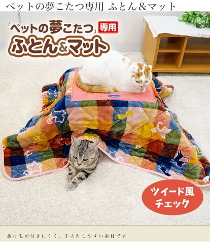 ドギーマンハヤシ 「ペットの夢こたつ」専用 ふとん&マット ツイード風チェック 4976555949308 ペットの夢こたつ専用のふとんとマットのセット。